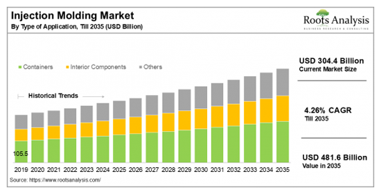 Injection Molding Market, Till 2035: Distribution by Type of Material, Type of Application, Type of End User, Geographical Regions: Industry Trends and Global Forecasts