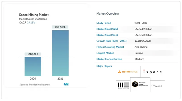 ◈ 우주 채굴 : 시장 점유율 분석, 업계 동향과 통계, 성장 예측(2026-2031년)